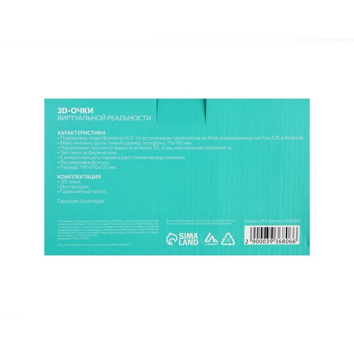 3D-очки LuazON - самое настоящее окно в волшебный мир виртуальной реальности. Принцип действия этой модели заключается в создании зрительного и акустического эффекта присутствия пользователя в локации, отображаемой на экране портативного устройства. Очки совместимы с любыми моделями смартфонов, чья диагональ экрана не более 6.5 дюймов. Удобные мягкие вставки в районе переносицы обеспечат комфортное погружение в волшебный 3D-мир по ту сторону экрана смартфона