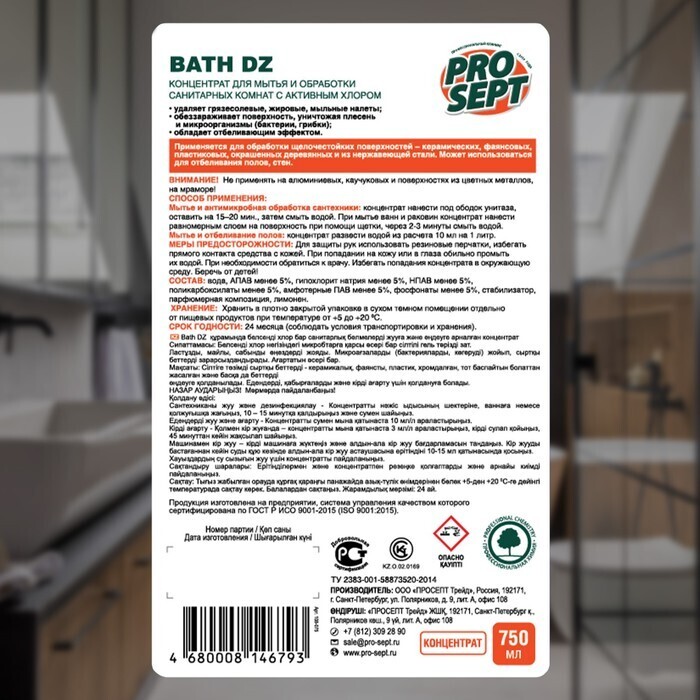 Меры предосторожности: Для зашиты рук использовать резиновые перчатки, прямого контакта средства с кожей. При попадании на кожу или в глаза обильно промыть водой. При необходимости обратиться к врачу. Беречь от детей.