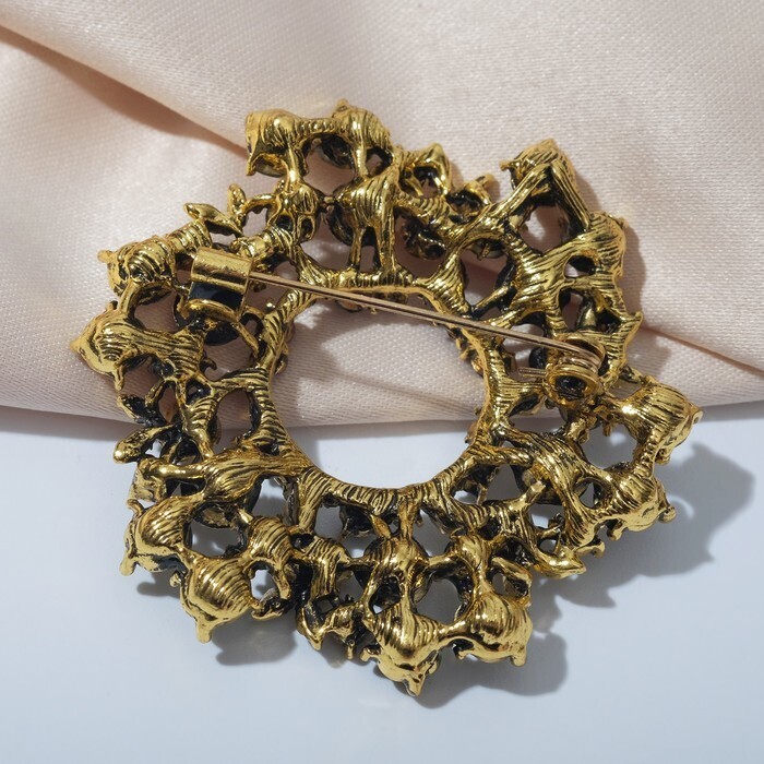 Брошь "Императрица" круг с розами, цвет серо-синий в чернёном золоте