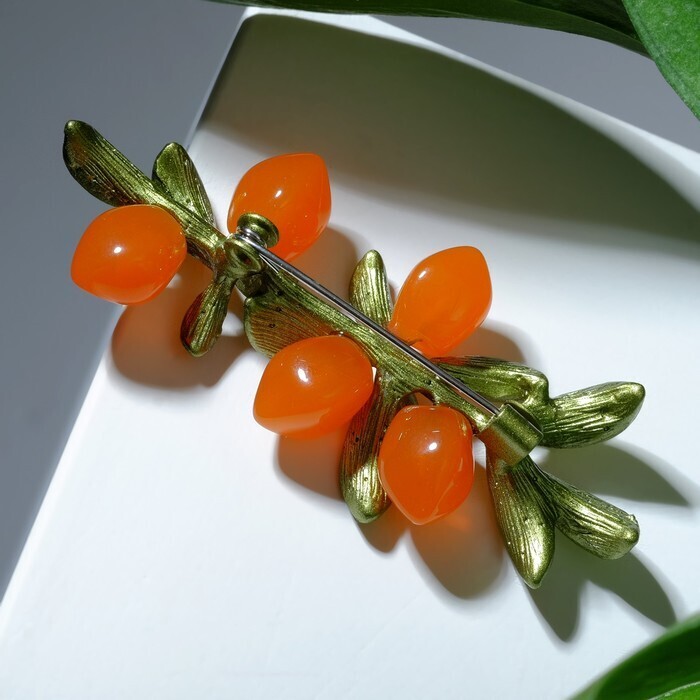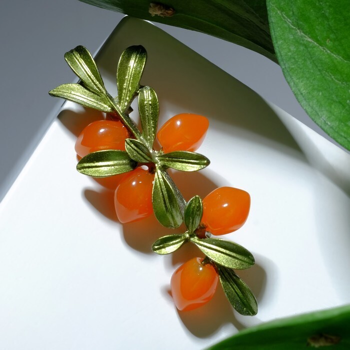 Брошь "Облепиха", цвет оранжево-зелёный в серебре