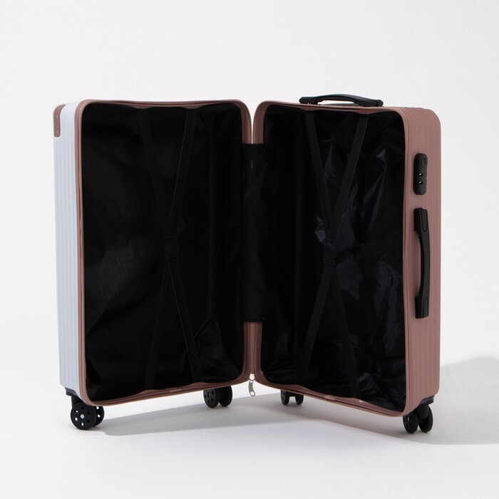 Чемодан большой 26", кодовый замок, цвет белый/розовый