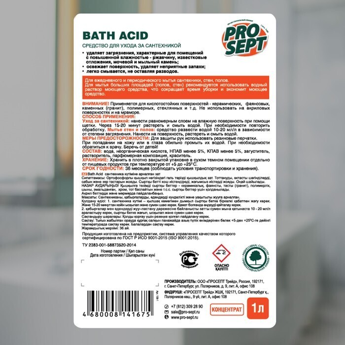 Чистящее средство для ухода за сантехникой Bath Acid . Концентрат, 1л