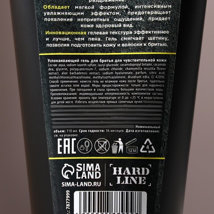 Состав: Aqua, Sodium Laureth Sulfate, Lauryl Glucoside, Cocamidopropyl Betaine, Cocamide DEA, Glycerin, Polyquaternium-7, Sodium Сhloride, Chamomilla Recutita Flower Extract, Aloe Barbadensis Extract, Sodium Hyaluronate, Parfum, Citric Acid, Methylchloroisothiazolinone, Methylisothiazolinone, Disodium EDTA, CI 42090.