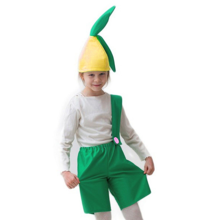Карнавальный костюм "Лучок", шапка, комбинезон, 5-7 лет, рост 122-134 см