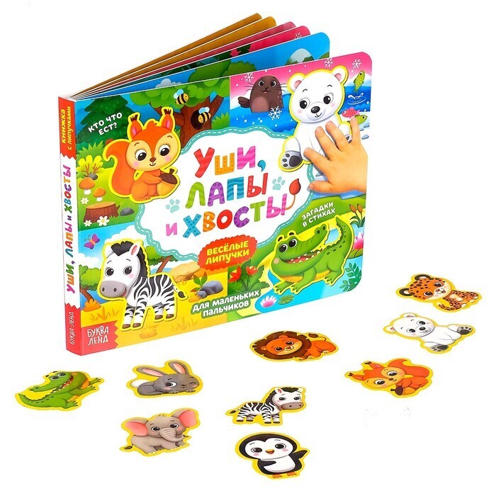 Обучающая книга с липучками «Уши, лапы и хвосты» направлена на расширение кругозора у деток. Внутри ребёнок найдёт интересные задания и загадки в стихах.