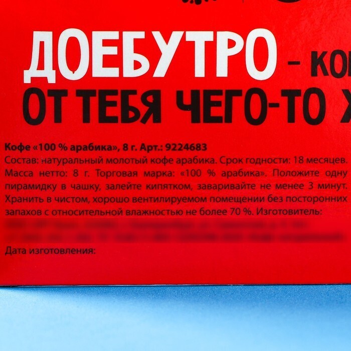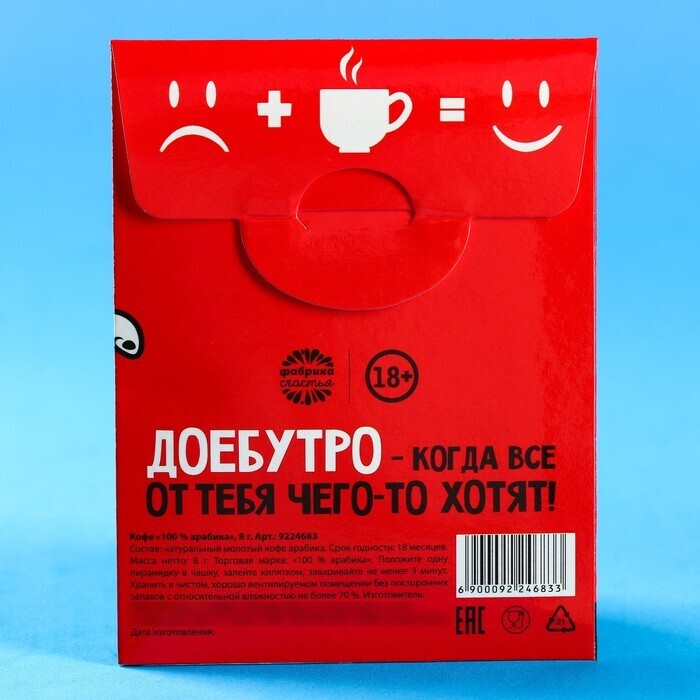 Кофе молотый 100% арабика «Заварю кофе и надеру тебе зад» в пирамидке в конверте, 1 шт. х 8 г.