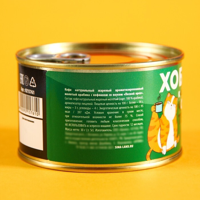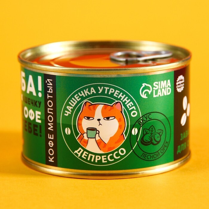 Кофе молотый «Чашечка утреннего депрессо» в консервной банке, вкус: лесной орех, 30 г.