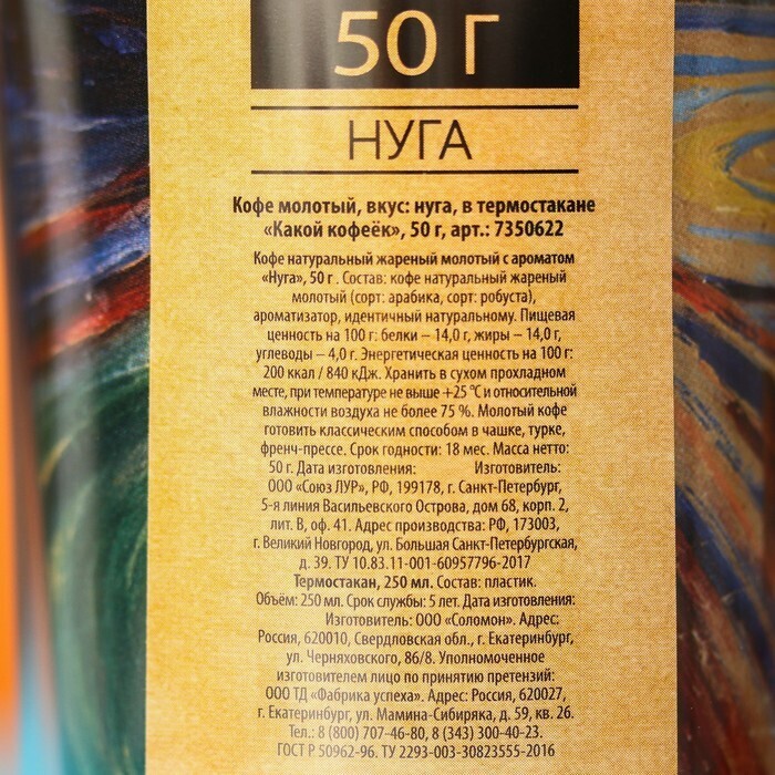 Кофе молотый «Какой кофеёк», вкус: нуга, в термостакане, 50 г.