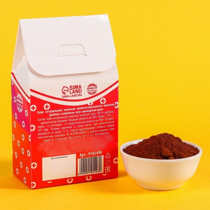 Состав: кофе натуральный жареный молотый (сорт: 100 % арабика), ароматизатор пищевой.