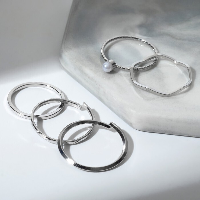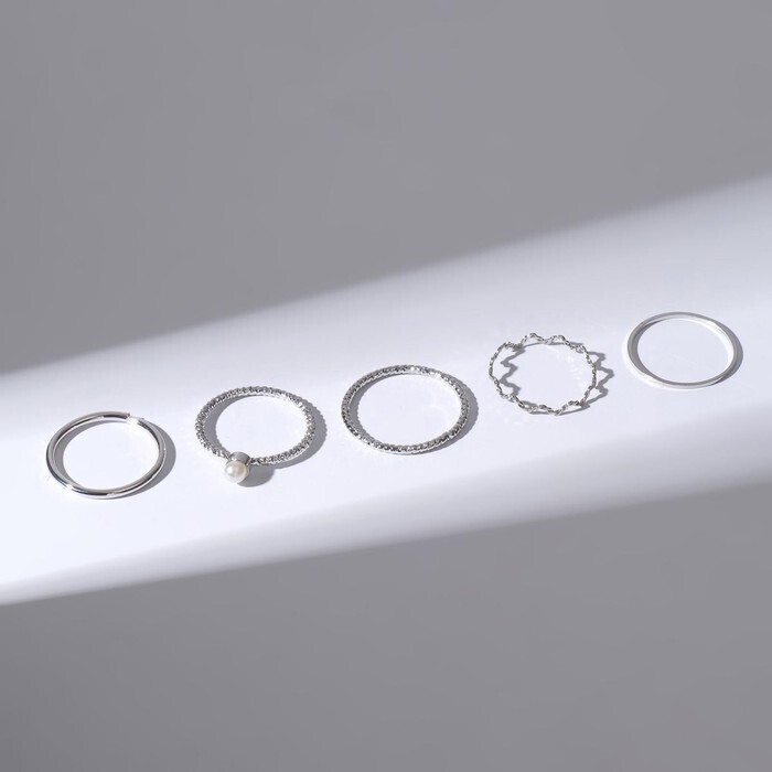 Кольцо набор 5 штук "Идеальные пальчики" искушение, цвет белый в серебре