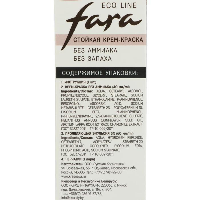 Fara Eco Line — стойкая крем-краска без аммиака и без запаха со 100% натуральным репейным маслом обеспечивает стойкий эффект окрашивания, яркий насыщенный цвет, щадящее воздействие и бережный уход за волосами от самой природы. Специально подобранный для оттенка 8.0 дополнительный активный компонент — натуральный экстракт ромашки увлажняет и питает кожу, успокаивает и восстанавливает, нормализует обменные процессы и работу сальных желез, а также смягчает волосы и придает им здоровый блеск.