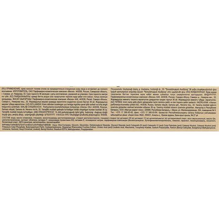Облепиховый крем предназначен для ухода за кожей в любое время суток. Благодаря содержанию активных природных компонентов крем отлично смягчает и питает кожу, устраняет сухость, предупреждает появление морщин, повышает ее упругость и эластичность. Комплекс витаминов, масел и растительных экстрактов в составе крема для лица питает, увлажняет, насыщает витаминами микроэлементами, нормализует водно-жировой баланс и активизирует процессы естественного восстановления эпидермиса.
