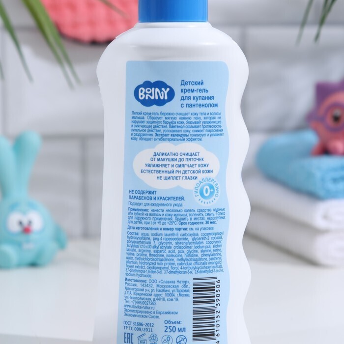 Легкий крем-гель бережно очищает кожу тела и волосы малыша. Образует мягкую нежную пену, которая не нарушает защитного барьера кожи, оказывает увлажняющее и смягчающее действие. Экстракт череды успокаивает и питает чувствительную кожу, снимает покраснения и шелушения. Увлажняет и смягчает кожу. Делает волосы мягкими и послушными. Не щиплет глазки, без вредных компонентов.