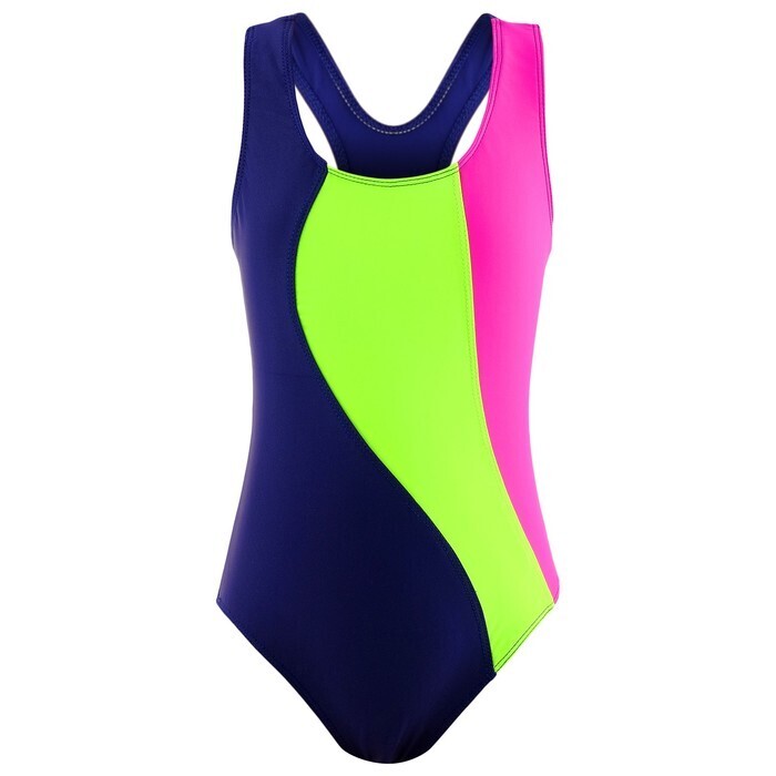 Купальник для плавания сплошной «Волна», тёмно-синий/зелёный/фуксия, размер 34