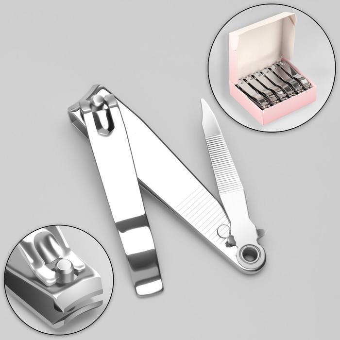 Кусачки-книпсер педикюрные, с пилкой, 7,6 см, фасовка 12 шт в коробке, цвет серебристый
