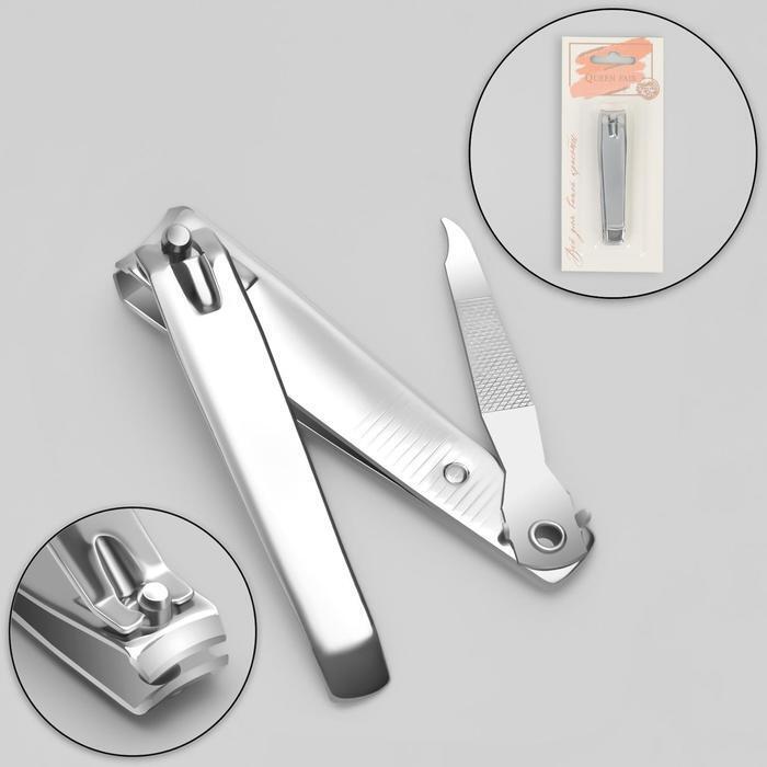 Кусачки-книпсер педикюрные, с пилкой, 8 см, на блистере, цвет серебристый