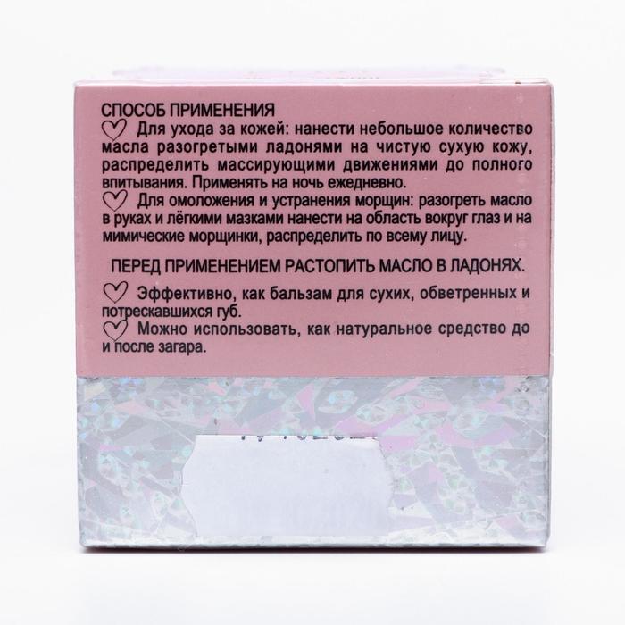 Чтобы ваше тело выглядело молодым как можно дольше, необходим комплексный подход. Именно поэтому состав масла ши обогащён маслом розы и гиалуроновой кислотой, которые могут улучшать естественную регенерацию, возвращать упругость и тонус, разглаживать морщины и подтягивать, интенсивно питать и увлажнять, насыщая кожу необходимыми витаминами и микроэлементами. Вы сможете моментально забыть о несовершенствах благодаря бережному соотношению природных экстрактов.