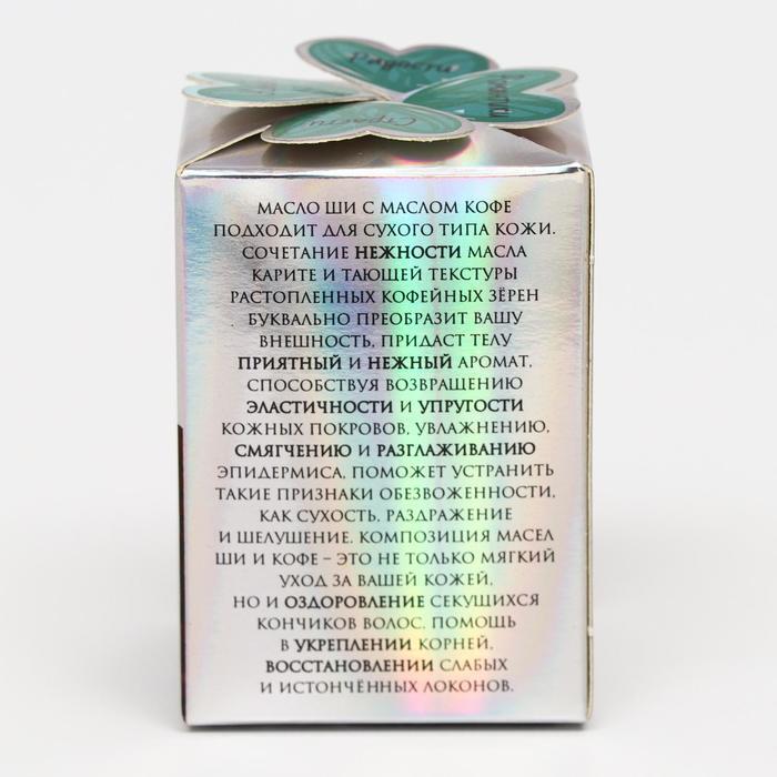 Масло ши с маслом кофе возвращает коже эластичность и повышает упругость. Способствует обновлению и омоложению, глубоко увлажняет.