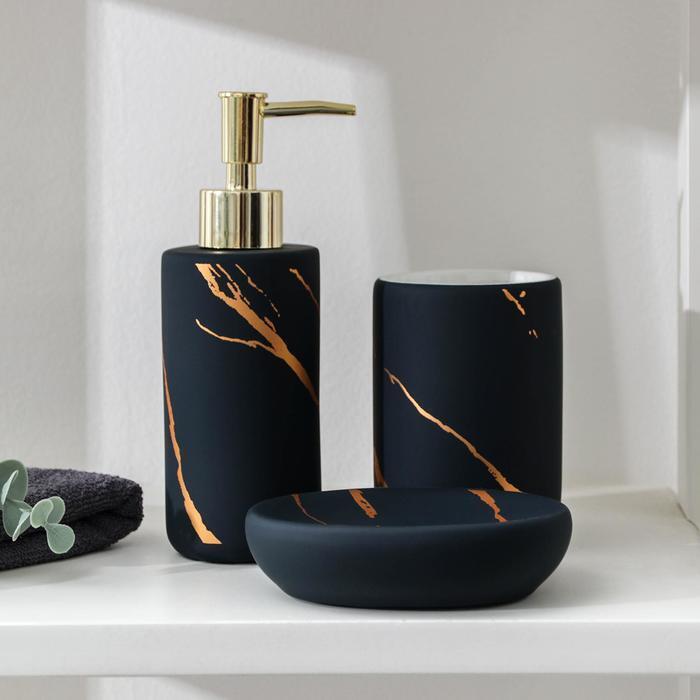 Набор аксессуаров для ванной комнаты Доляна «Зевс», 3 предмета (мыльница, дозатор для мыла, стакан), цвет синий