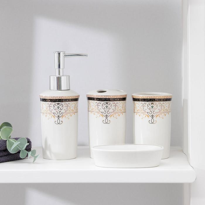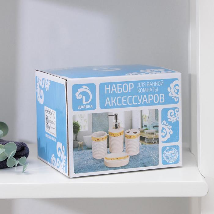 Набор предметов для ванной «Золотая роскошь» не только внесёт изюминку в интерьер, но и значительно облегчит хранение некоторых принадлежностей. Изделия устойчивы к резким перепадам температуры и высокой влажности. Также стоит отметить качество аксессуаров — набор при правильном уходе прослужит вам очень долго.