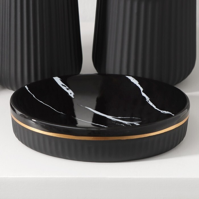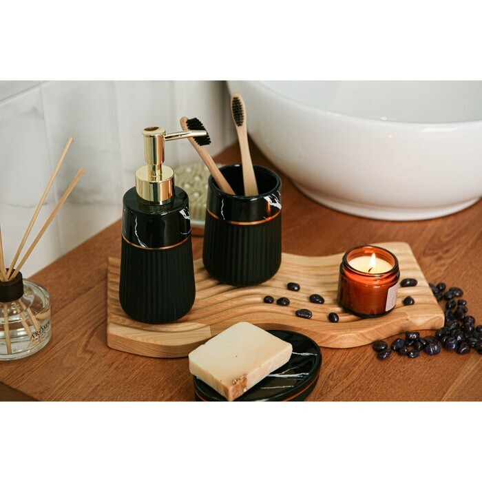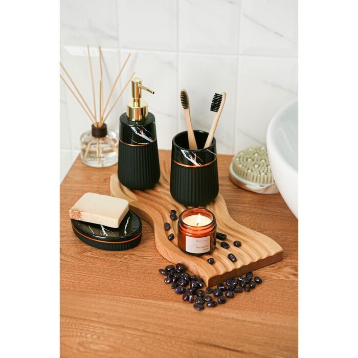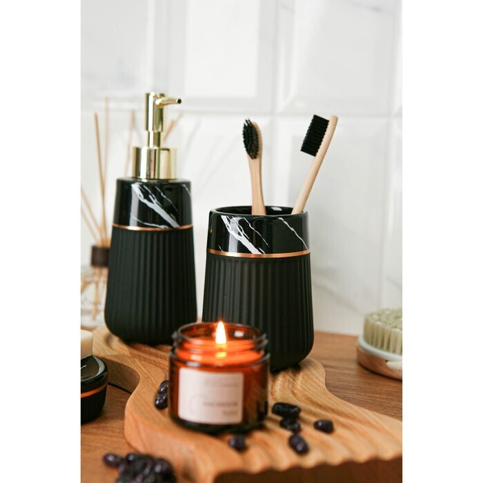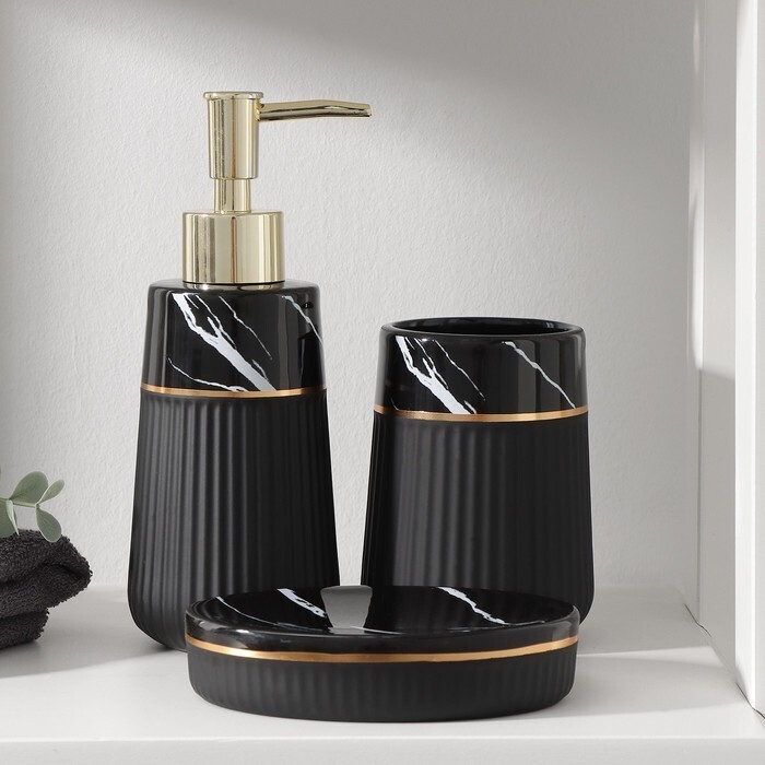 Набор аксессуаров для ванной комнаты SAVANNA Grace, 3 предмета (дозатор для мыла 290 мл, стакан, мыльница), цвет чёрный мрамор