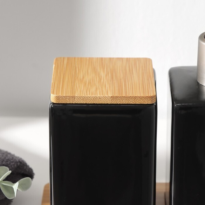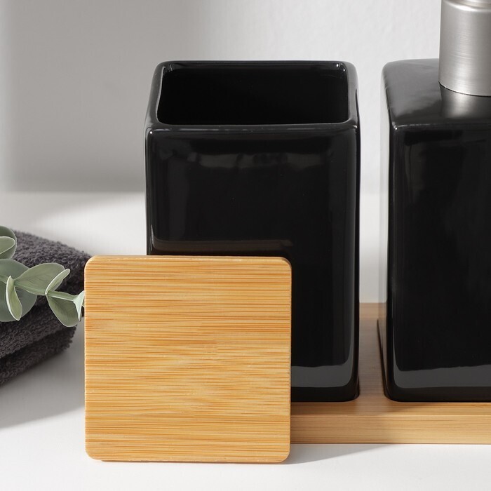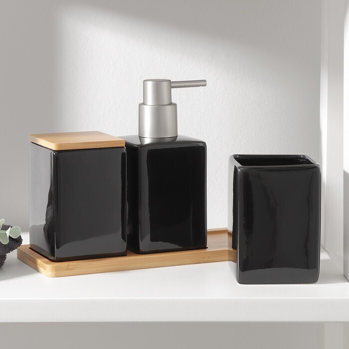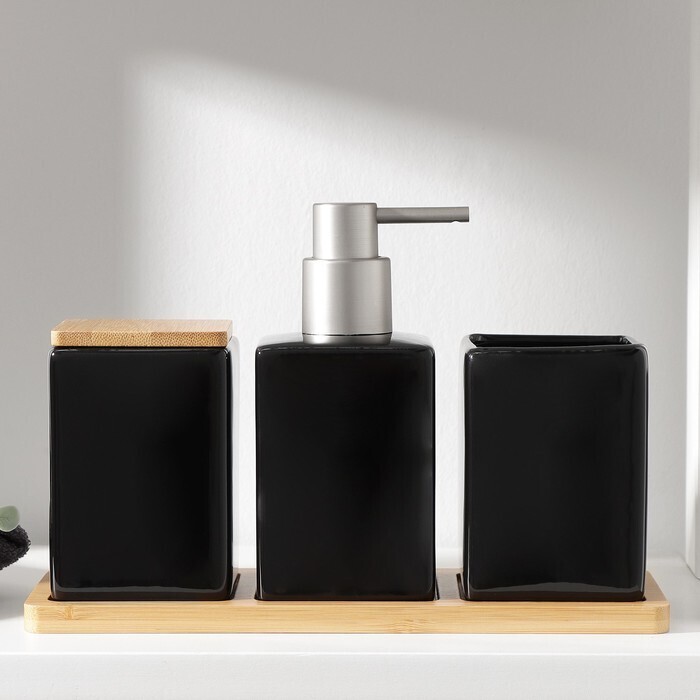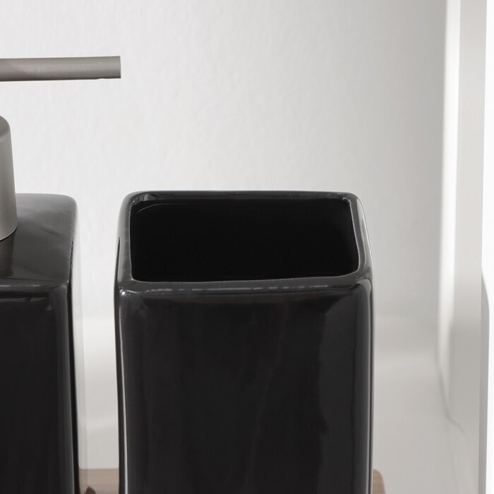Набор аксессуаров для ванной комнаты SAVANNA Square, 4 предмета (дозатор для мыла, 2 стакана, подставка), цвет чёрный