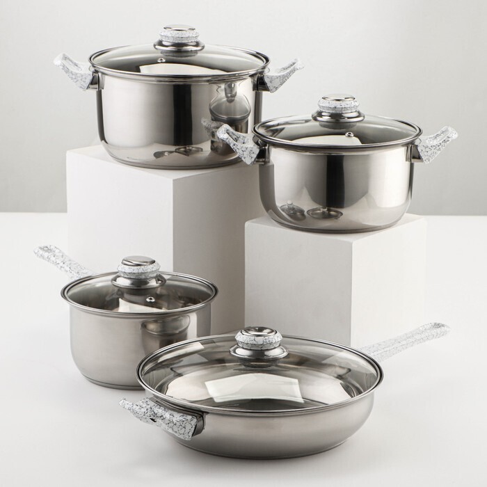 Хорошая посуда — это одна из составляющих вкусного ужина. С набором «Марбл» готовка превращается в удовольствие. Подходит для приготовления самых разных блюд: от аппетитных рагу до блюд, тушёных на медленном огне, — на каждый день или по особым случаям.