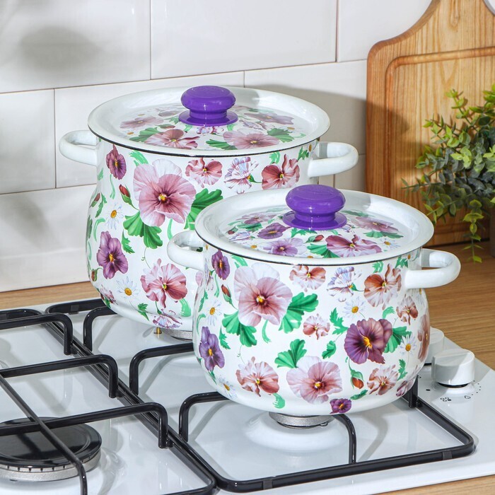 Набор кастрюль «Анютины глазки», 2 предмета: 4 л, 5,5 л, эмалированные крышки, индукция