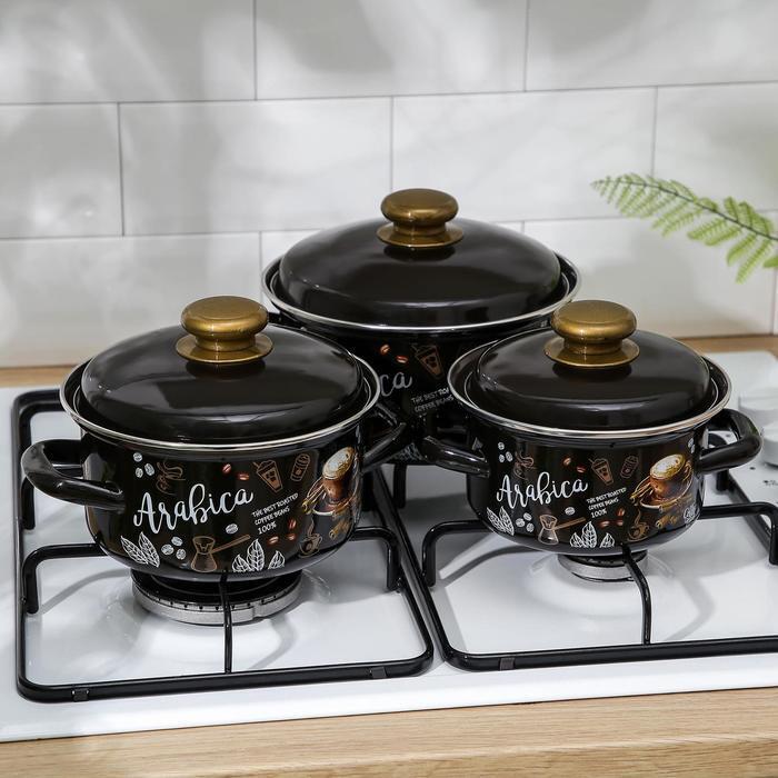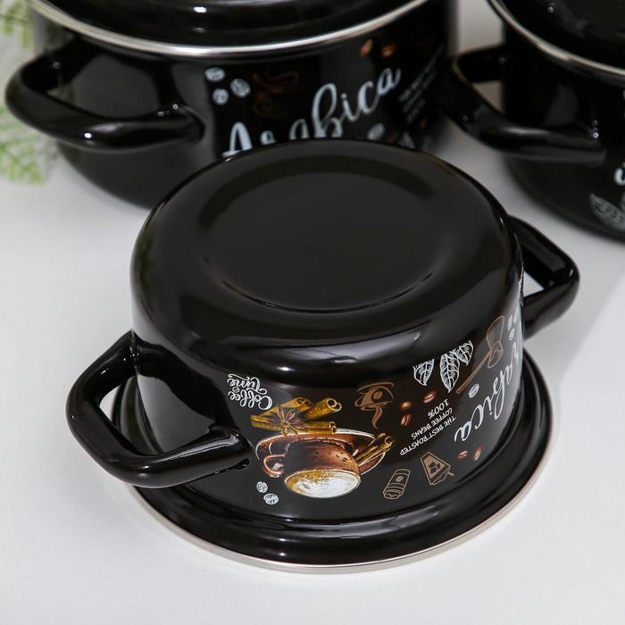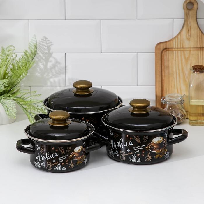 Набор кастрюль «Арабика-1»: 3 предмета: 1 л, 1,5 л, 2,3 л, индукция, цвет чёрный