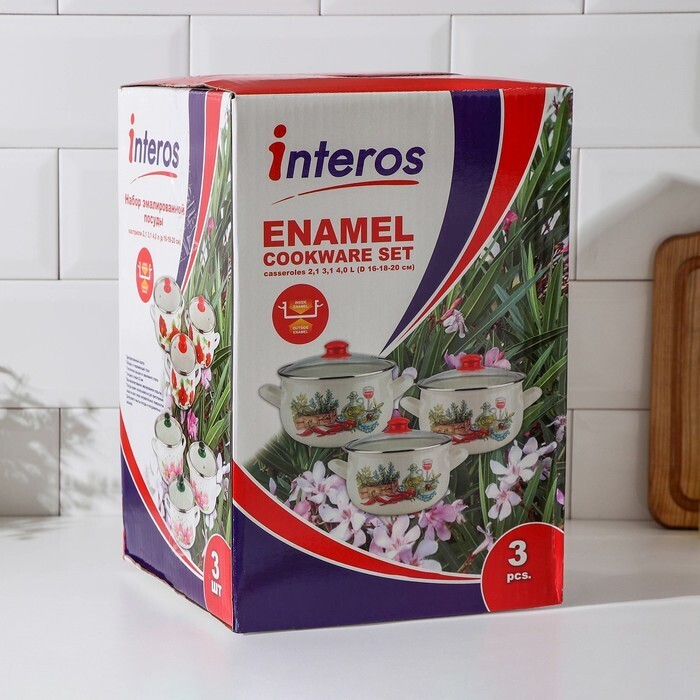 Кастрюли сделаны из качественной стали, покрытой эмалью с декоративным рисунком. Они отлично подходят для приготовления и хранения различных блюд.