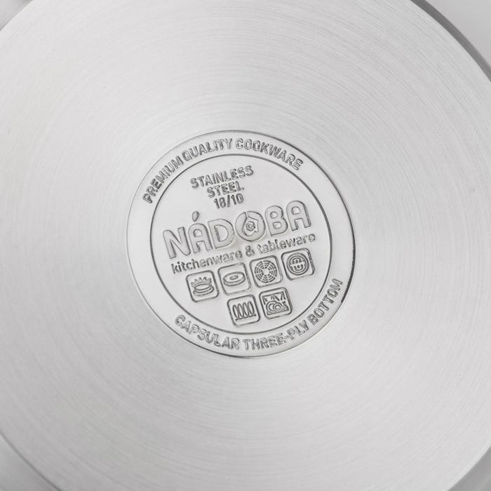 • Посуда изготовлена из нержавеющей стали 18/10 — в состав входит 18 % хрома и 10 % никеля. Материал устойчив к механическим повреждениям, в нём нет микротрещин и микропор.