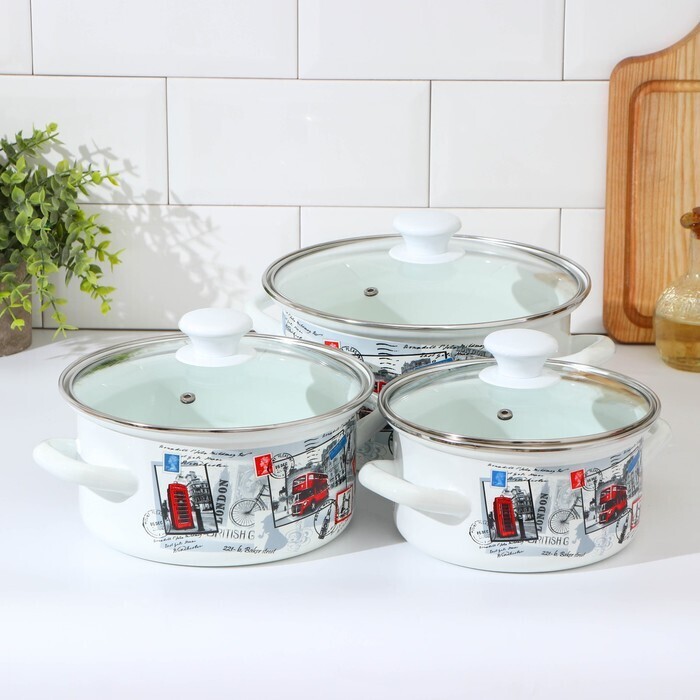 Набор кастрюль «Вояж», 3 предмета: 1,5 л, 2,3 л, 3 л, стеклянные крышки, индукция, цвет белый