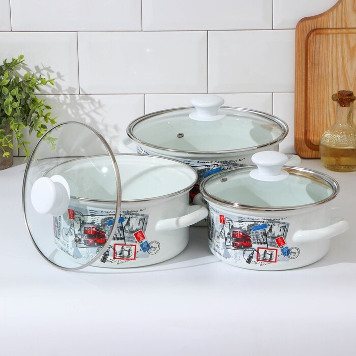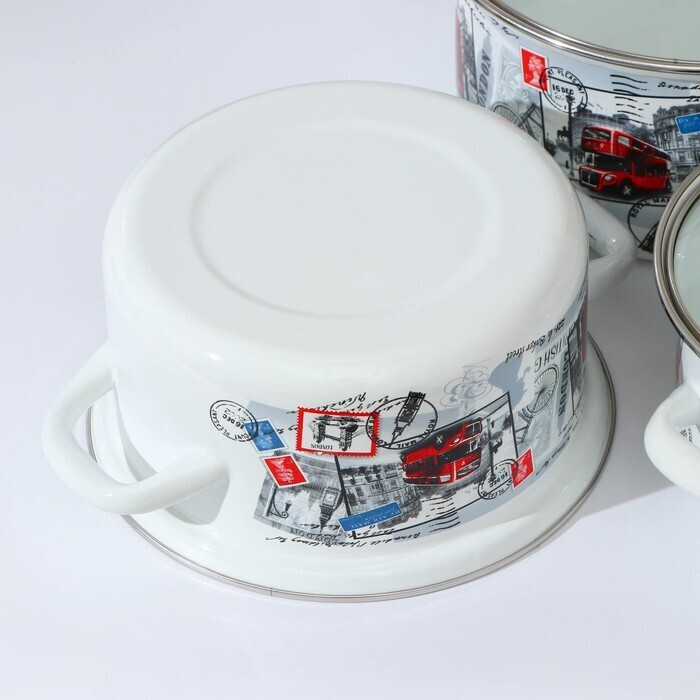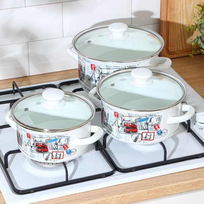Кастрюли сделаны из качественной стали, покрытой эмалью с декоративным рисунком. Они отлично подходят для приготовления и хранения различных блюд.