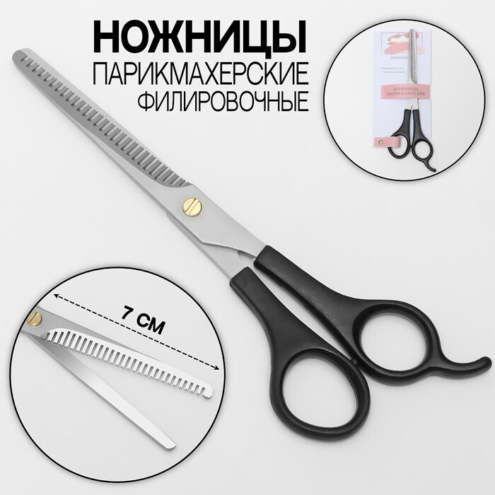 Ножницы филировочные с упором, лезвие — 7 см, цвет чёрный