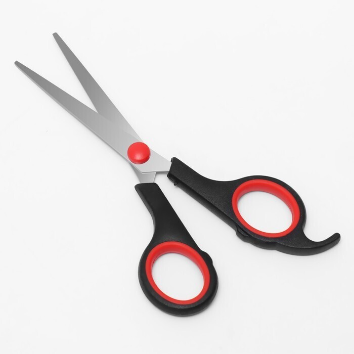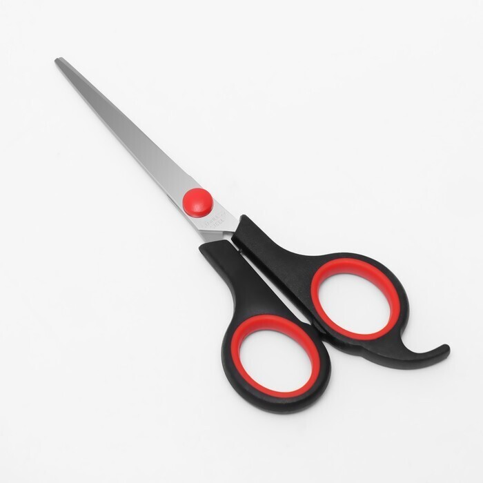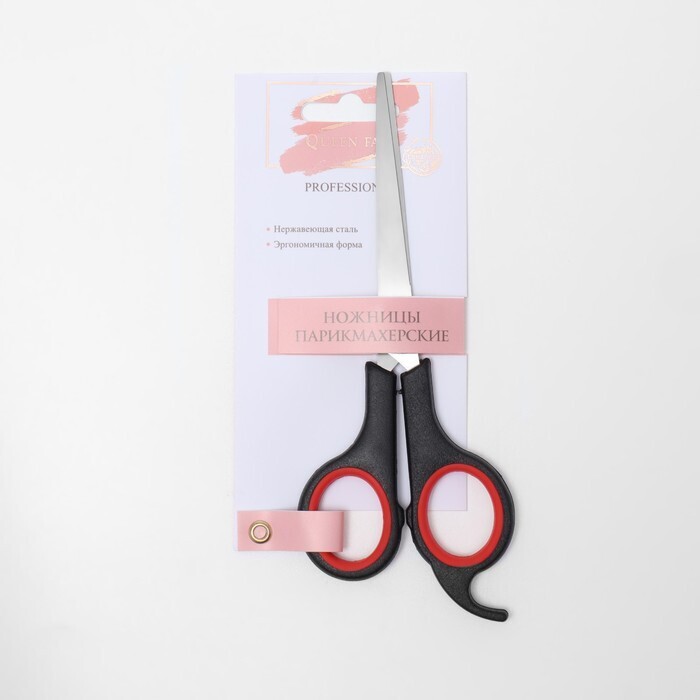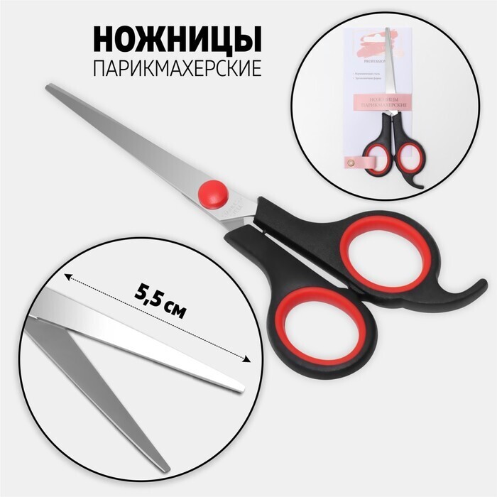Ножницы парикмахерские с упором, лезвие — 5,5 см, цвет чёрный/красный