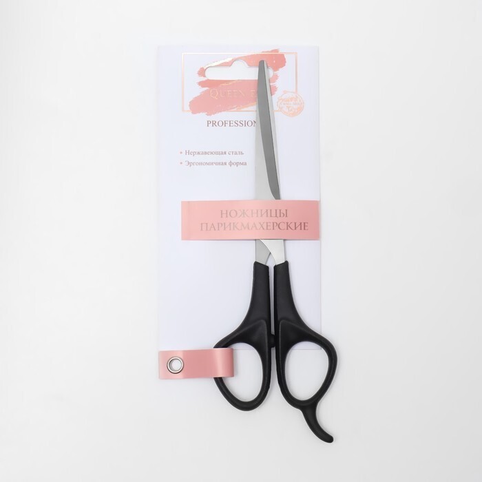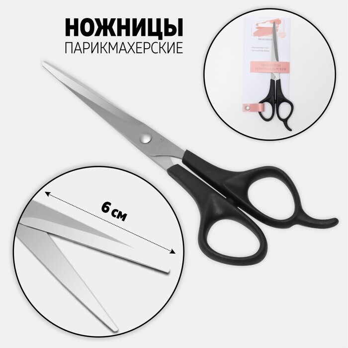 Ножницы парикмахерские с упором, лезвие — 6 см, цвет чёрный/серебряный