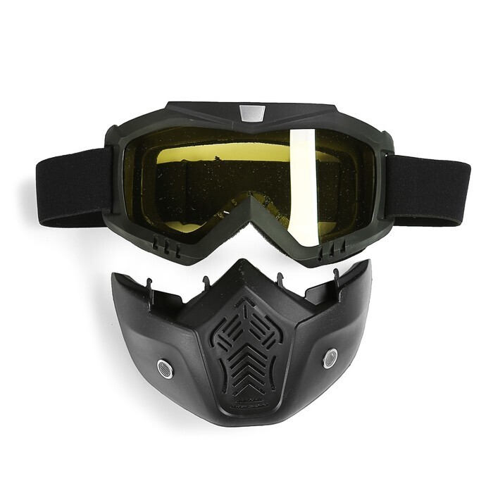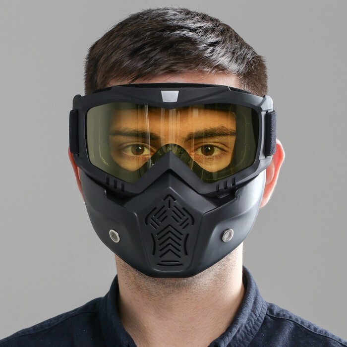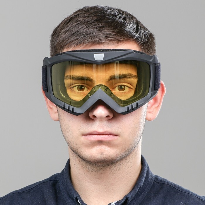 Очки-маска для езды на мототехнике, разборные, стекло желтое, цвет черный