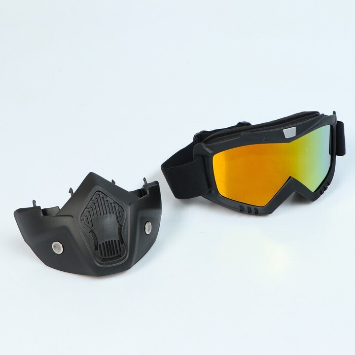 Очки-маска для езды на мототехнике, разборные, стекло золотой хром, черные