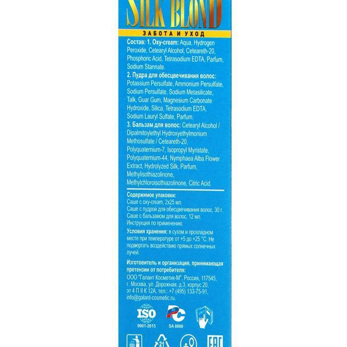 Осветлитель для волос обеспечивает высокую степень осветления волос на 5-6 тонов без повреждения их структуры. Создает эффект натуральных светлых оттенков различной интенсивности, в зависимости от структуры волос и времени воздействия. Равномерно распределяется по волосам, не течет при нанесении. Может использоваться перед покраской волос для предварительного осветления, а также при мелировании. Содержит комплекс биологически активных веществ, которые защищают и укрепляют структуру волос по всей длине. Увлажняющие и ухаживающие компоненты растительного происхождения защищают волосы в процессе осветления. Бальзам с жидким шелком создает на поверхности волоса пленку, способствующую выравниванию структуры волос. Бальзам восстанавливает структуру и эластичность волос, делая их мягкими и блестящими.