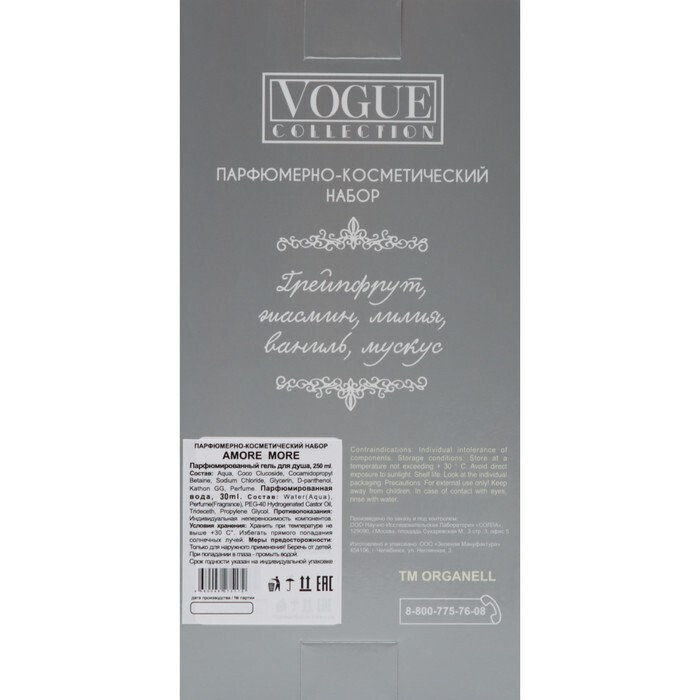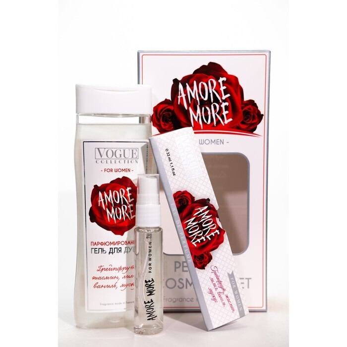 В женский подарочный набор входят парфюмированный гель для душа и парфюмированная вода. Amore More - воздушный сияющий аромат для современных женщин. Парфюмерная композиция создает обволакивающий интимный шлейф.