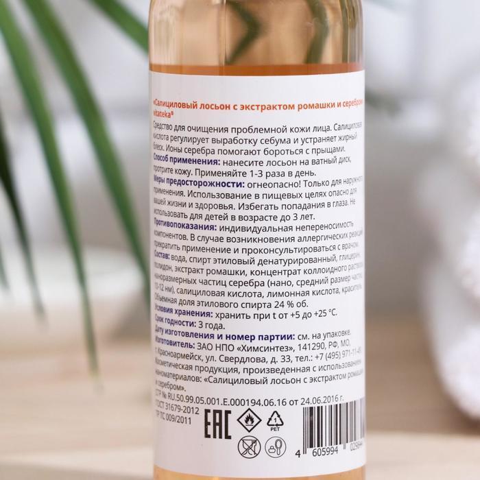 Состав: вода, спирт этиловый денатурированный, глицерин, полидон, экстракт ромашки, концентрат коллоидного раствора серебра(нано), салициловая кислота, лимонная кислота, краситель. Объемная доля этилового спирта 36%
