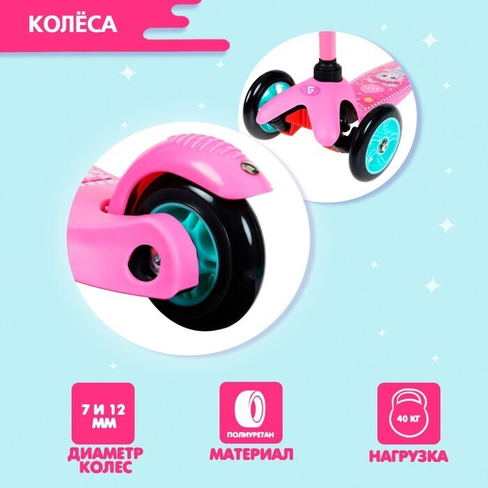 Колёса изготовлены из полиуретана, что повышает стойкость к коррозии и износу, имеют высокие показатели грузоподъёмности и их невозможно проколоть. Дека изготовлена из пластика — это повышает уровень долговечности и устойчивости к влаге.