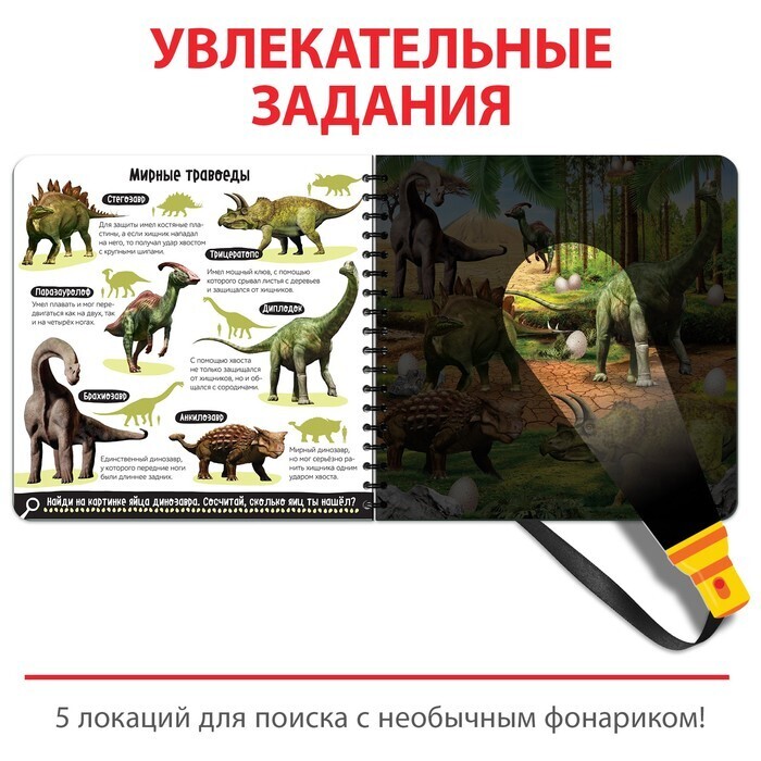 Секретная книга с волшебным фонариком «Диноленд» привлекает внимание ребёнка своей необычной задумкой.