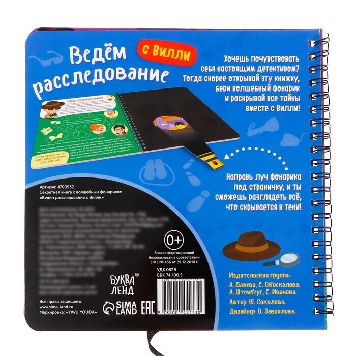 Секретная книга с волшебным фонариком «Ведём расследование с Вилли» привлекает внимание ребёнка своей необычной задумкой.