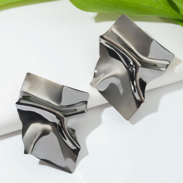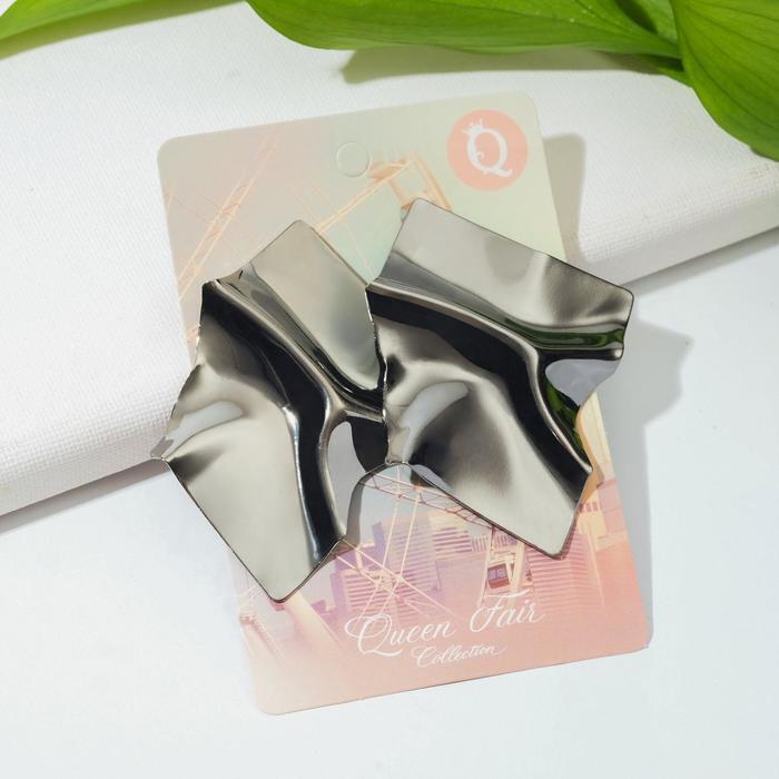 Серьги металл "Атмосфера" ромб мятый, цвет серый