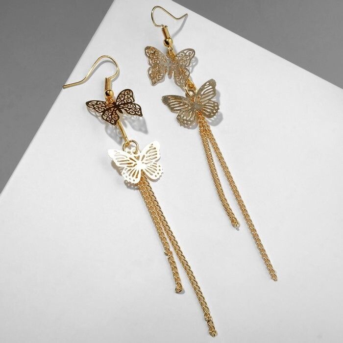 Серьги висячие "Бабочки" ниточки, цвет золото