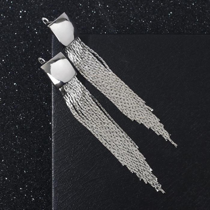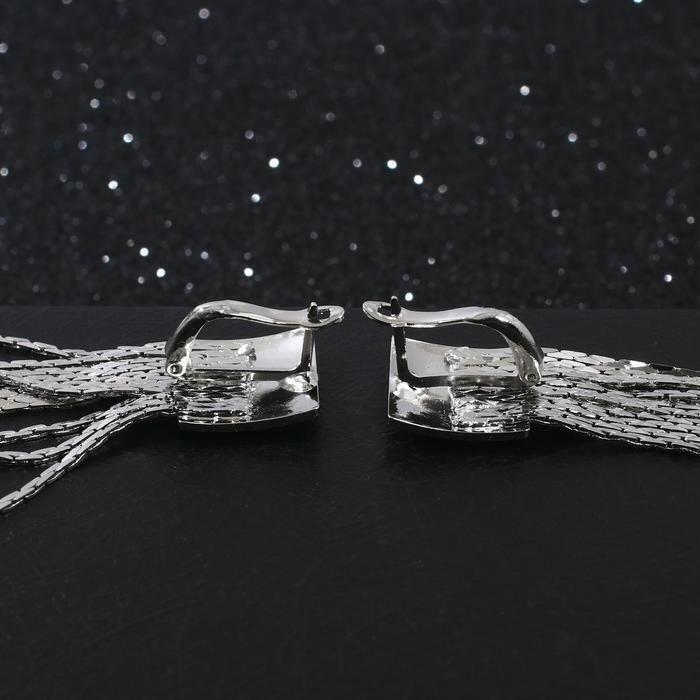 Серьги висячие "Голливуд" квадрат и нити, цвет серебро