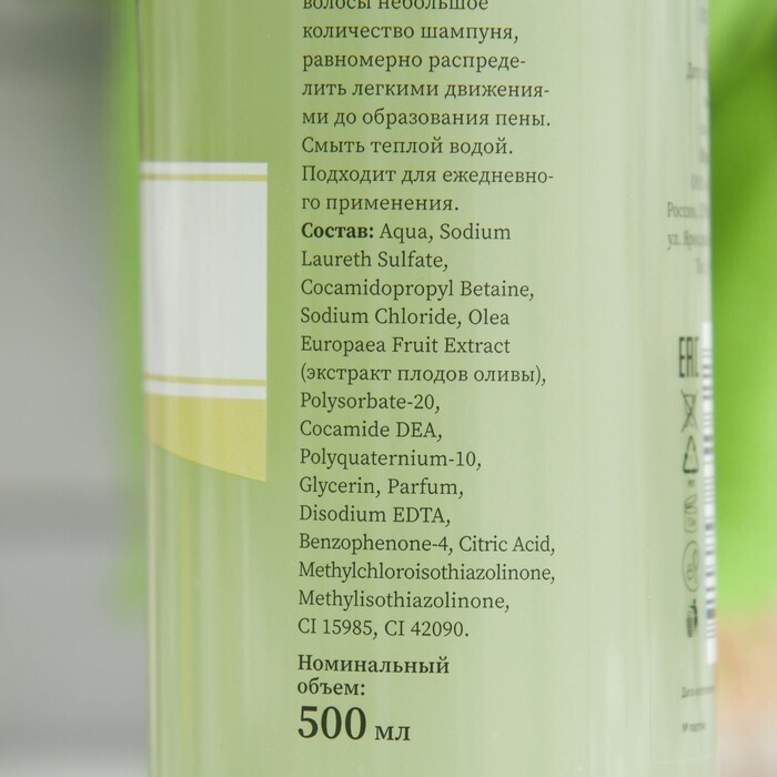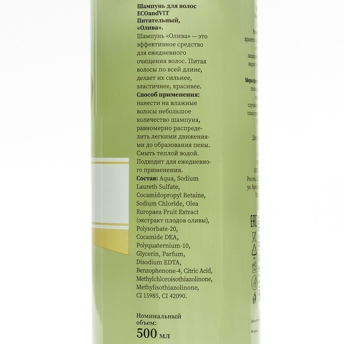 Шампунь ECOandVIT, для волос, питательный, олива, Organic Oil, 500 мл