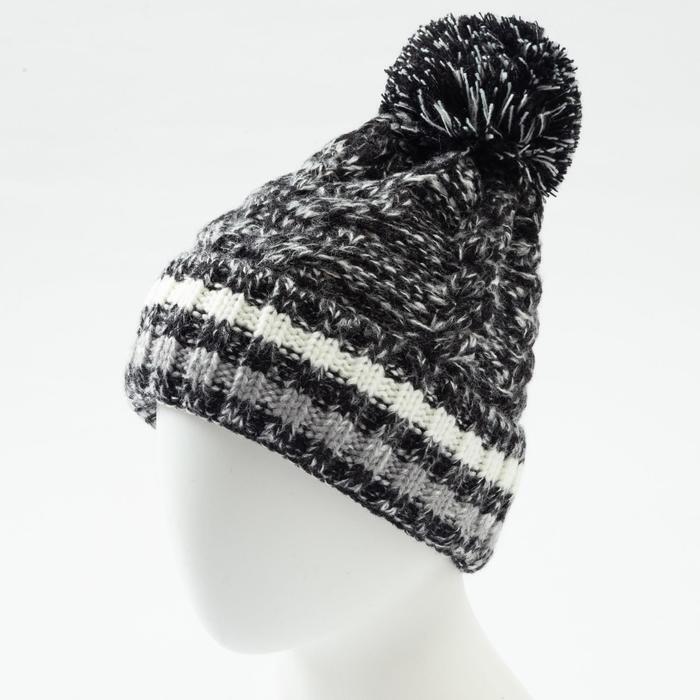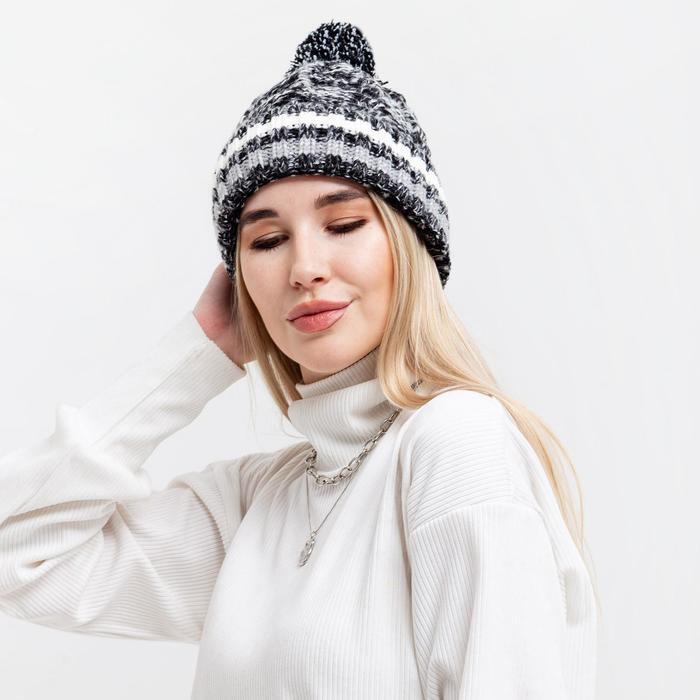 Шапка женская MINAKU с помпоном и подворотом, размер 54-56, цвет черный