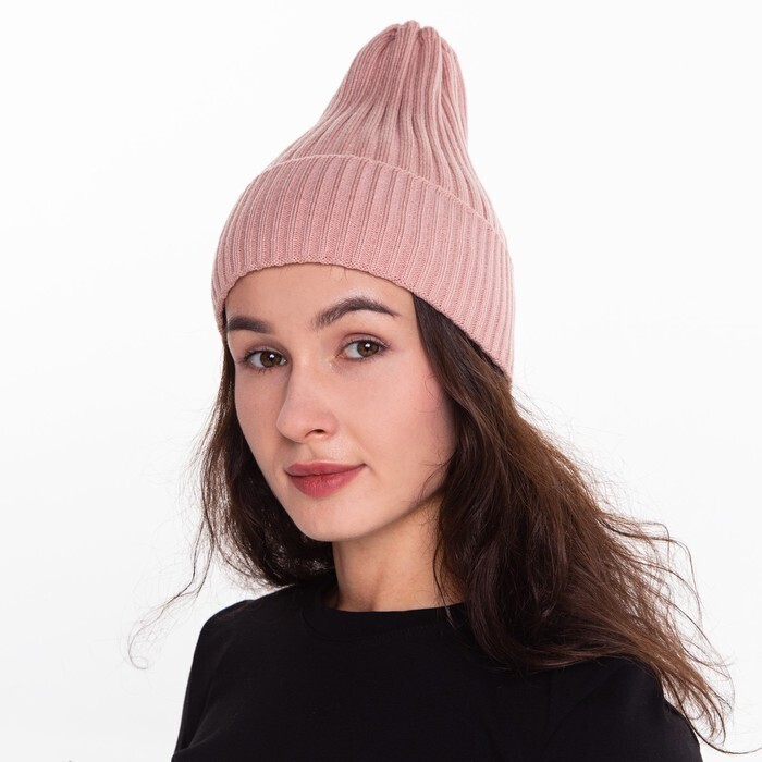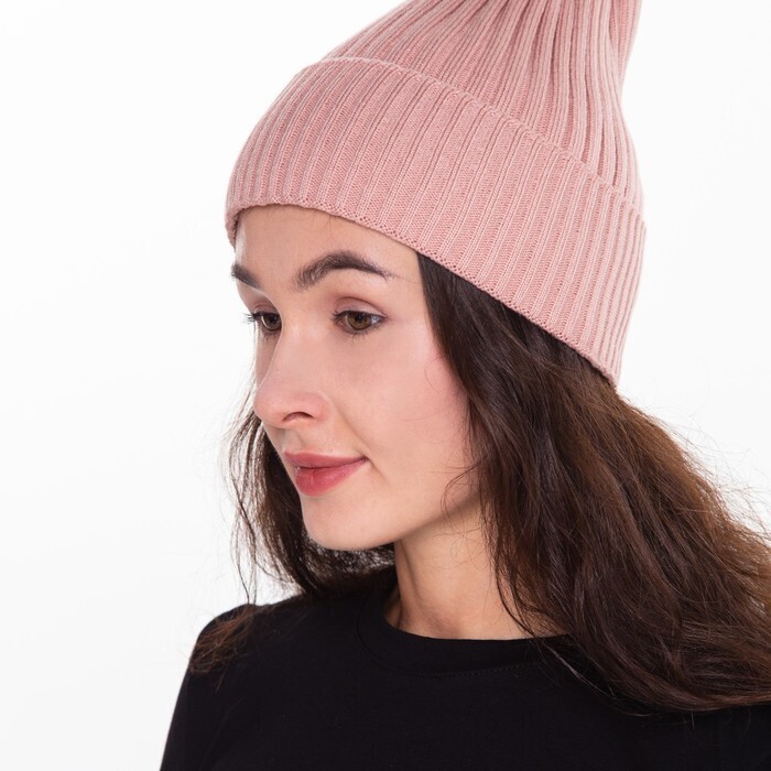 Шапка женская зимняя, цвет пудра, размер 52-56